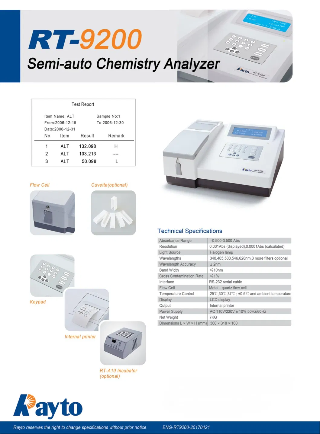 Designed for clinical tests of blood and various general biochemical criteria of other body fluids.